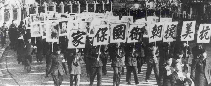 1950年7月10日,“中国人民反对美国侵略台湾朝鲜运动委员会”成立,抗美援朝运动自此开始。10月,中国人民志愿军赴朝作战,拉开了抗美援朝战争的序幕。在抗美援朝战争中,志愿军得到了解放军全军和中国全国人民的全力支持,得到了以苏联为首的社会主义阵营的配合。1953年7月,双方签订《朝鲜停战协定》,从此抗美援朝胜利结束。1958年,志愿军全部撤回中国。10月25日为抗美援朝纪念日。
