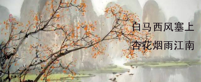 “白马西风塞上,杏花烟雨江南”的意思是骑白马驰骋在秋风萧瑟的辽阔塞上,杏花在春雨中悄然绽放,把春天的江南装点得更加温婉、秀丽。