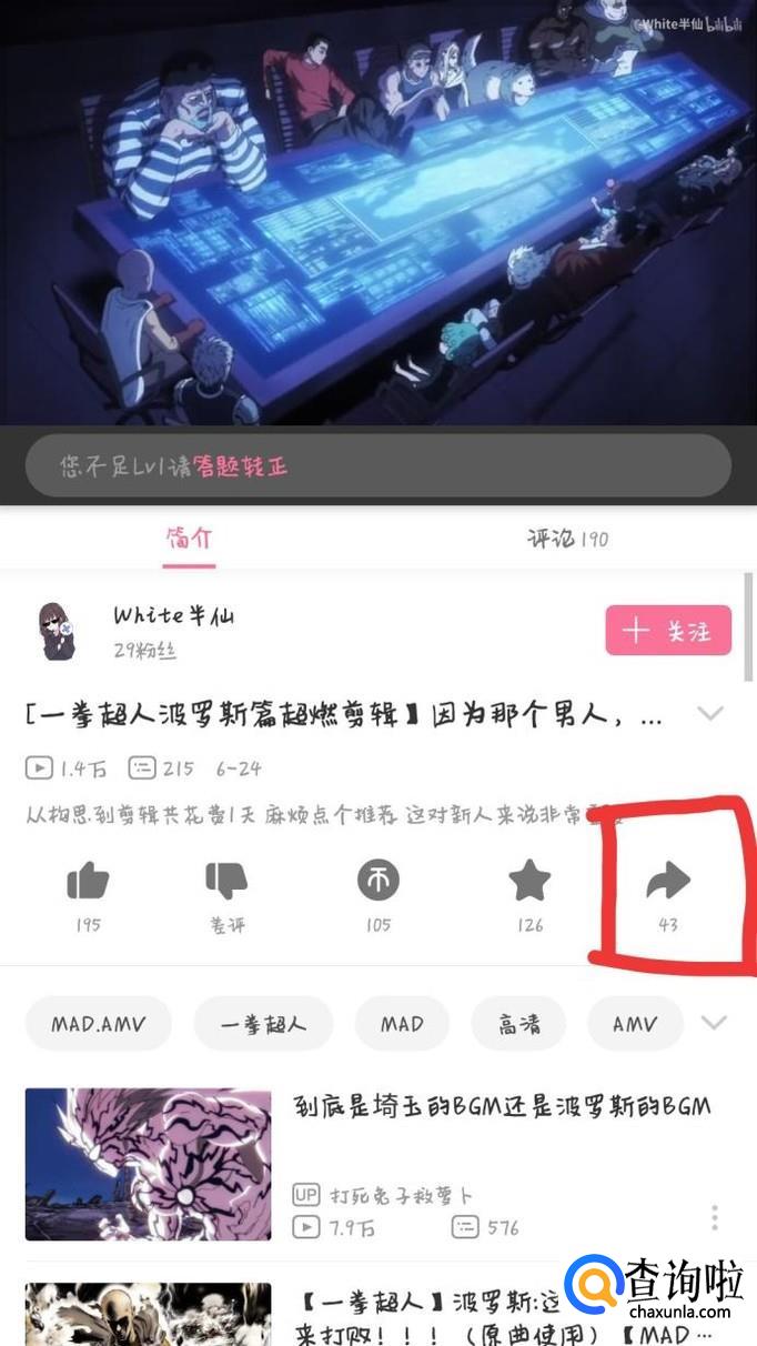 点击开视频之后,点击视频下方类似小箭头的转发键。