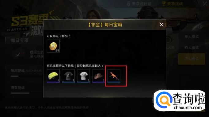 赛季段位越高,开启每日宝箱获取道具的几率越大。