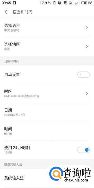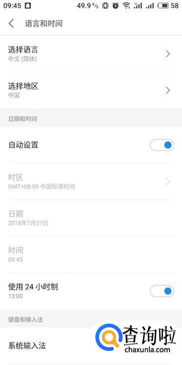 进入语言和时间设置界面,将日期和时间中的“自动设置”右侧滑块关闭。