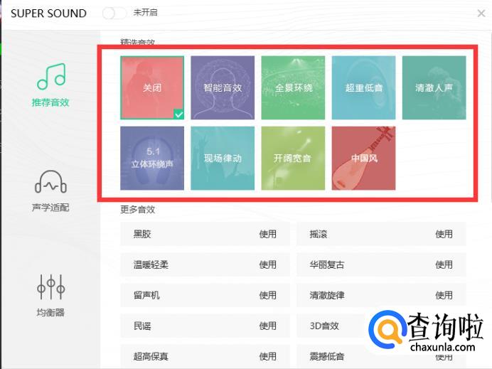 打开以后我们可以看到系统有很多预设置的音效,你可以根据自己的爱好直接设置。