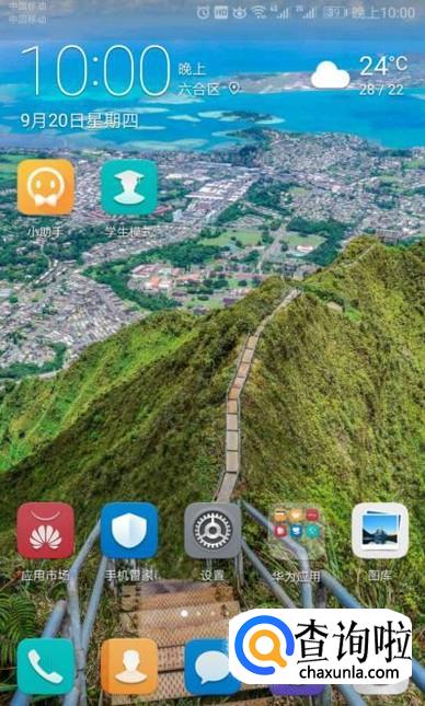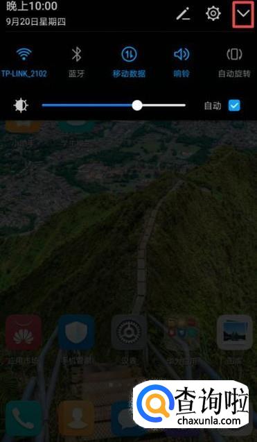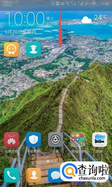 首先,我们打开我们的华为荣耀10,然后我们在桌面的上方朝着下方下滑一下;