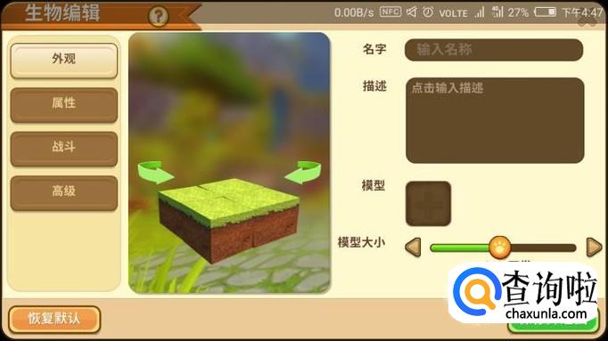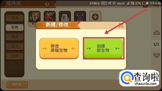 然后找到“创建新生物”,点击进入。