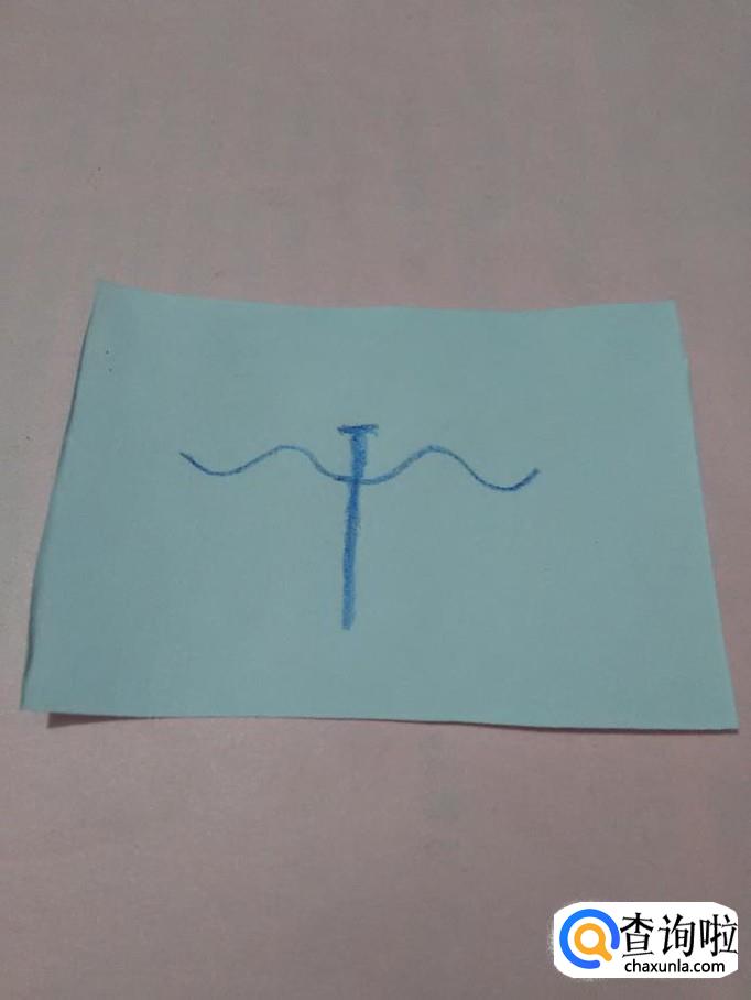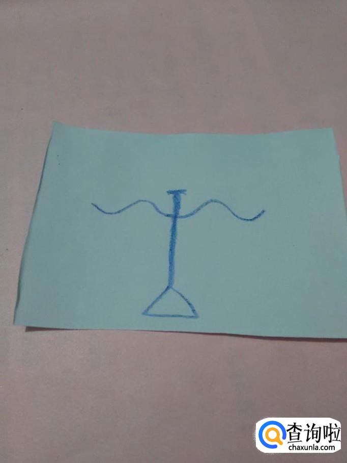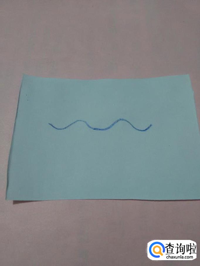先用蓝笔在纸上画一条波浪线,表示秤杆。