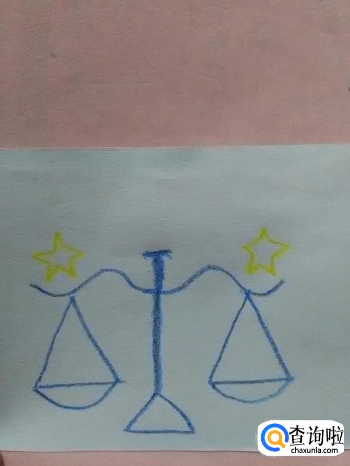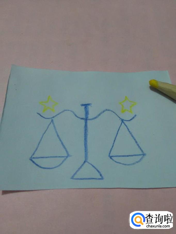 最后用黄色笔在秤的两端各画一个五角星。天秤座就画完了。