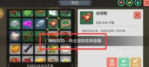 捕捉牛的道具是“坐骑鞍”,在包裹里点击“坐骑鞍”,然后点击使用,这时候系统会弹出消息“捕捉成功,快去宠物菜单查看”。自此,牛就成功捕获了。