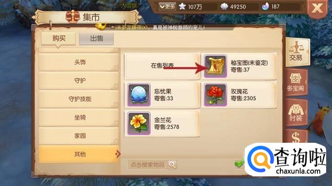 当然,如果你不想自己挖宝,而且你又有钱的话,就可以直接在集市交易的其他中购买秘宝图。