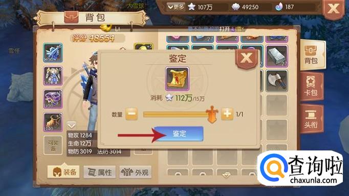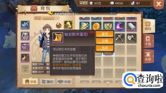 那么秘宝图怎么使用呢?在背包中点击秘宝图,要先进行鉴定操作,选择“鉴定”