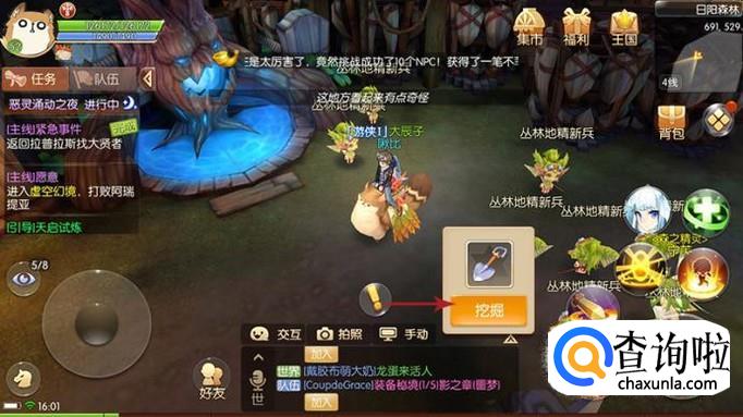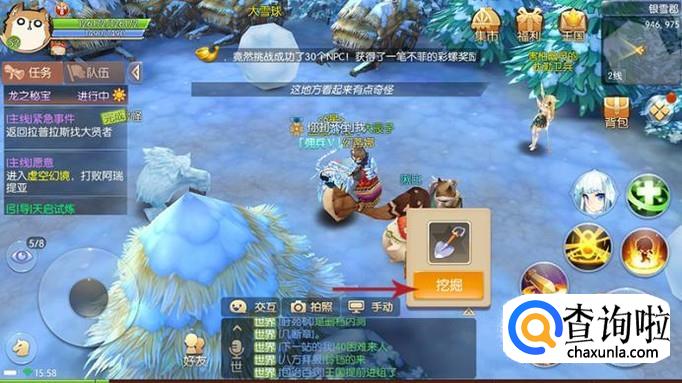点击宝图使用之后自动寻路到目的地,然后点击“挖掘”