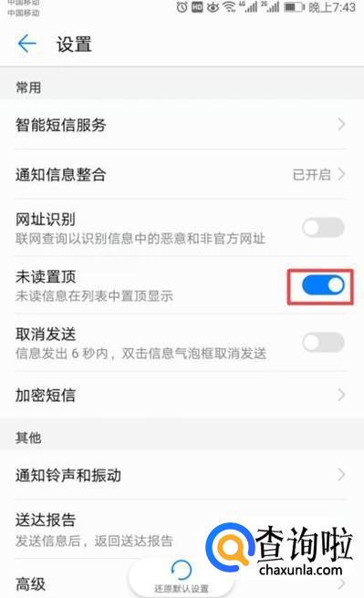 打开结果如图,之后未读信息就会置顶了。