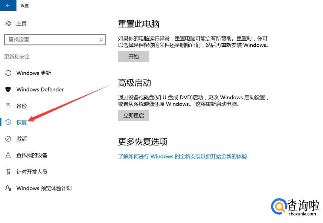 在新的页面中点击【恢复】。
