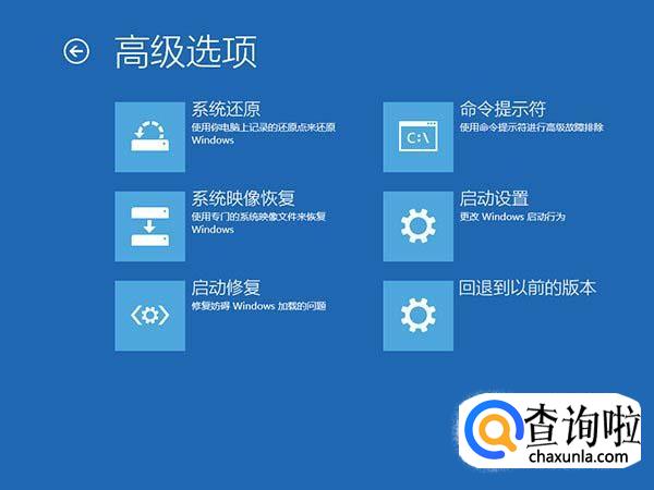 当然我们也可以选择【回退到以前的版本】来退回到之前的操作系统。对此只需要在【高级选项】界面中点击【回退到以前的版本】项即可。