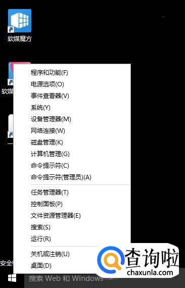 进入【安全模式】后,在【开始】按钮右键菜单中选择【设备管理器】。