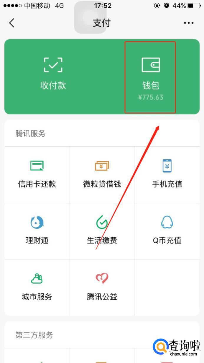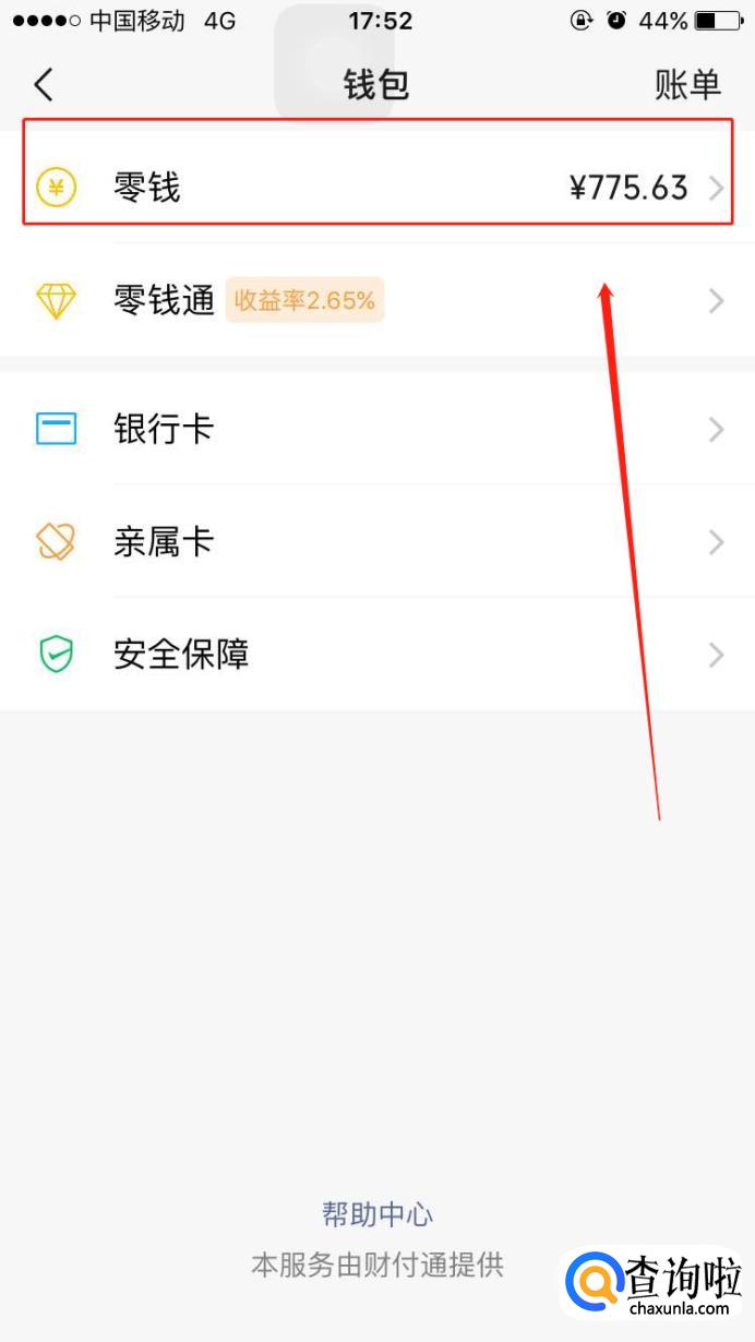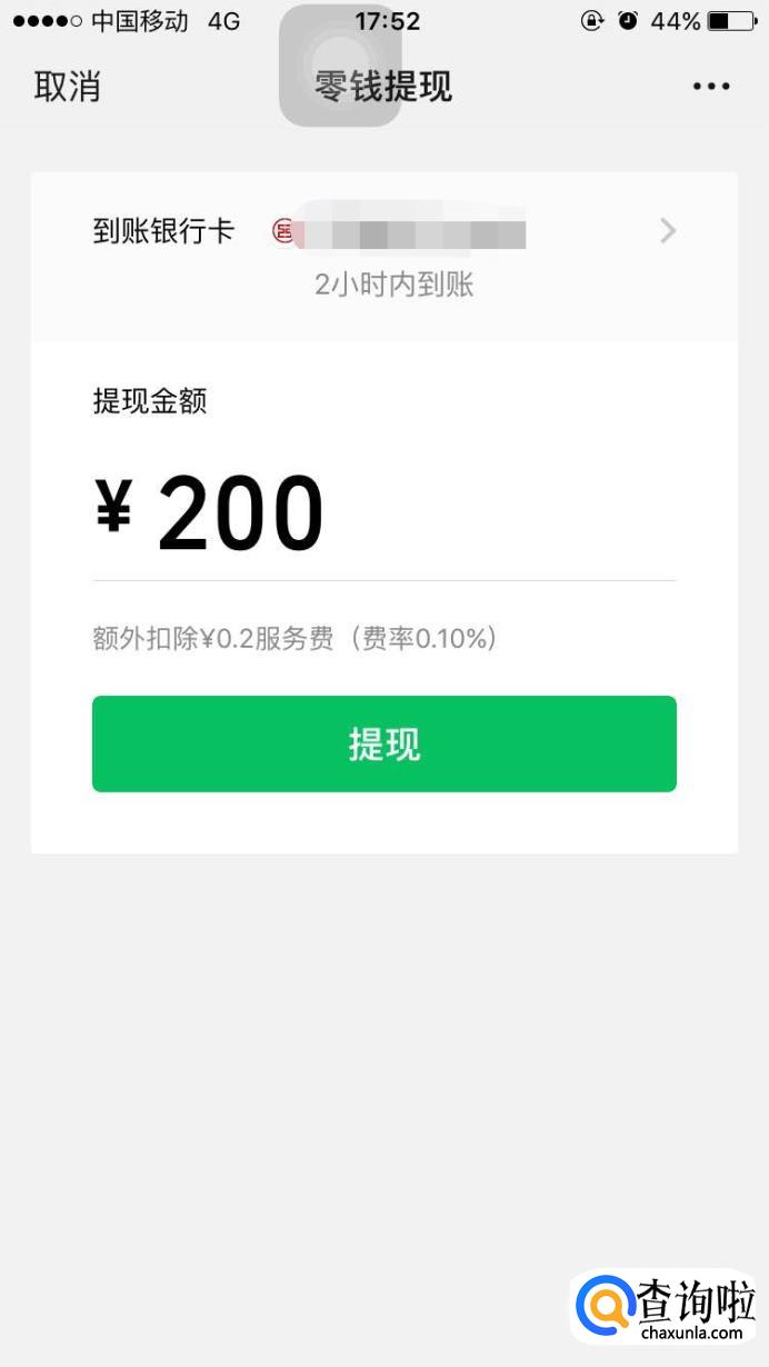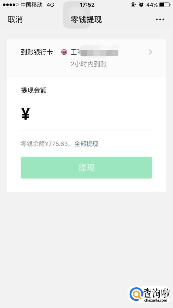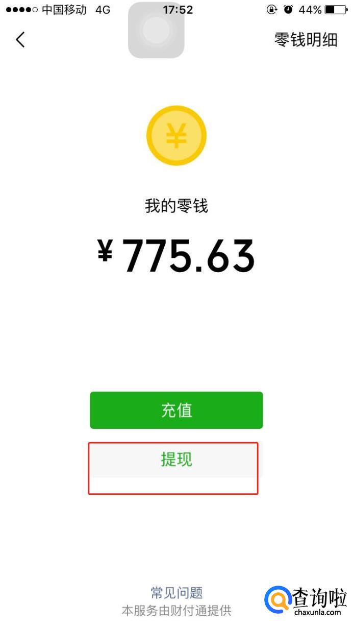 此时我们可以看到点击“零钱”以后,会出现一个“提现”的标志,如图所示。