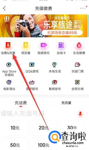 进入下一页面,点击“话费&流量”,进入下一页面,如图所示。