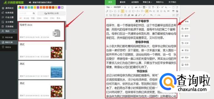 导入的word会自动转换到编辑器内,并保存到“我的文章”中。导入的文档可直接编辑和排版,节省很多时间。