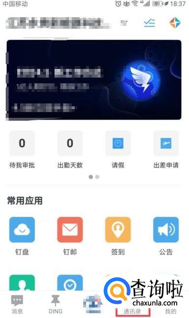 首先,我们打开我们的手机,然后我们打开我们手机上的钉钉,之后我们点击通讯录;