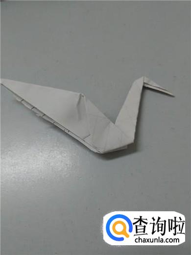 再将右侧的小角从内侧向下折,折成鸟头,平衡鸟就折好了。