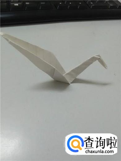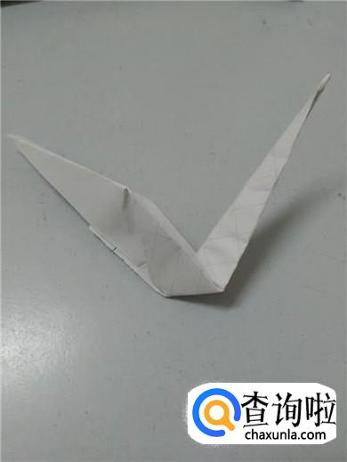 将纸从中间向内侧折,立起来的右侧就是平衡鸟的头和脖子。