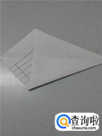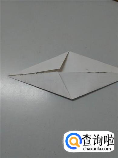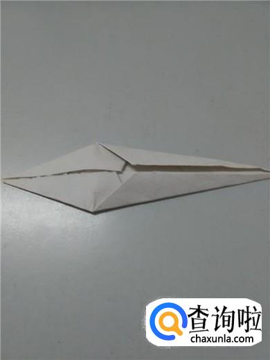将纸向反方向对折,右侧用来折平衡鸟的头,左侧用来折平衡鸟的尾巴。
