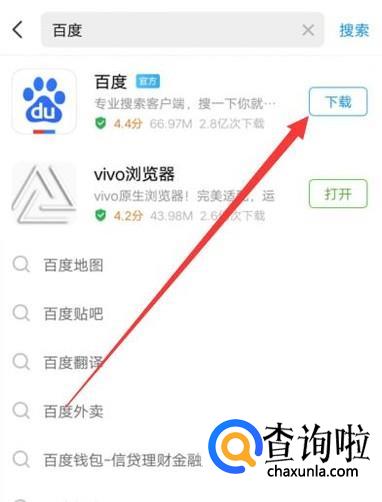 打开手机,进入手机应用商店,将百度APP安装到手机上面,如图所示。