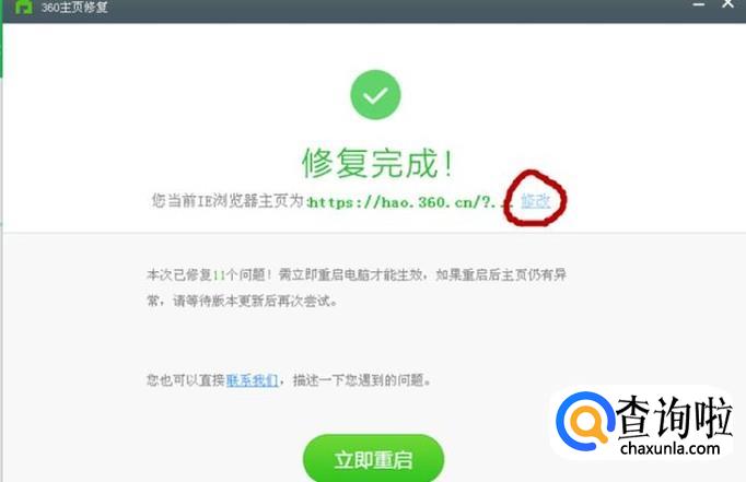 修复完成后,不要立即点“立即重启”,而是点上面的“修改”。