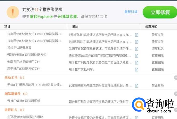 在出现的界面点“开始扫描”,然后开始扫描有关修复选项,扫描完成点“立即修复”。