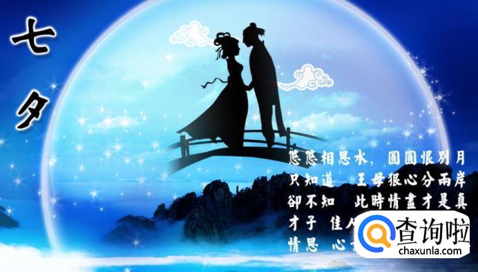 问世间,情为何物?忆往昔,牛郎织女。观银河,烟波浩渺。搭鹊桥,咫尺天涯。揽九天,日月星辰。寄此情,地久天长。浪漫七夕,愿有情人终成眷属!祝你幸福!
