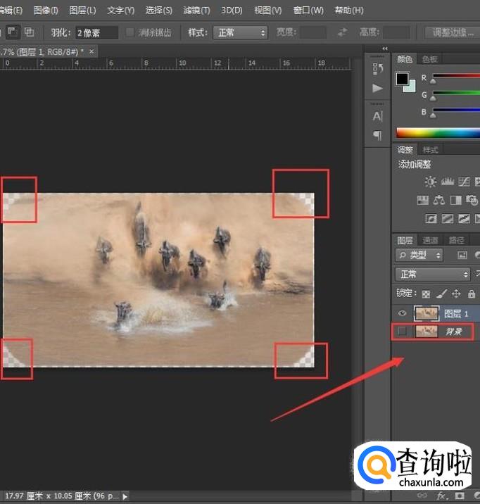依次按【ctrl+c】-【ctrl+v】,新建选区图层。再【设置背景图层不可见】(关闭背景图层前面的小眼睛)。
