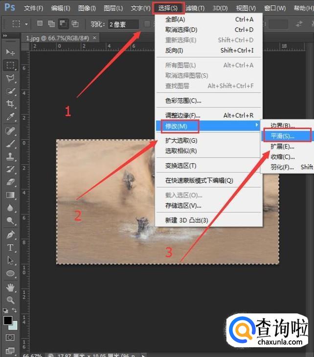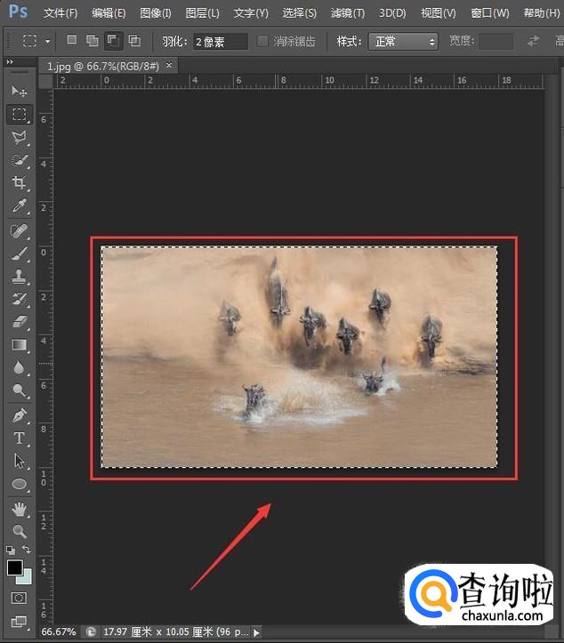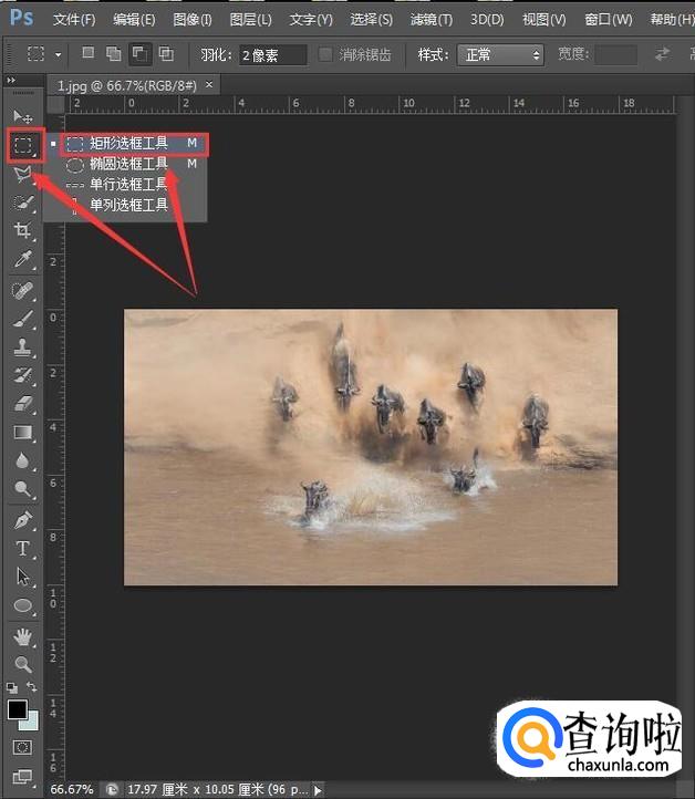 打开图片,依次选择【选框工具】-【矩形选框工具】