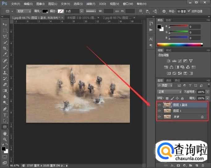 打开图片,连续按两次【ctrl+j】(新建图层1、图层1副本)