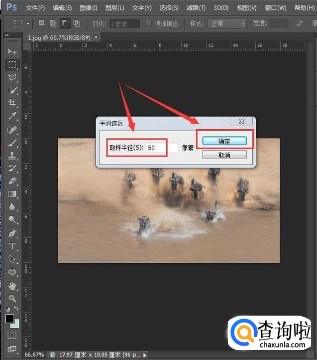 输入【取样半径】(取样半径根据图片像素而定,如果不确定请输入一个数值后观察半径大小再自行进行增减调整),然后点击【确定】
