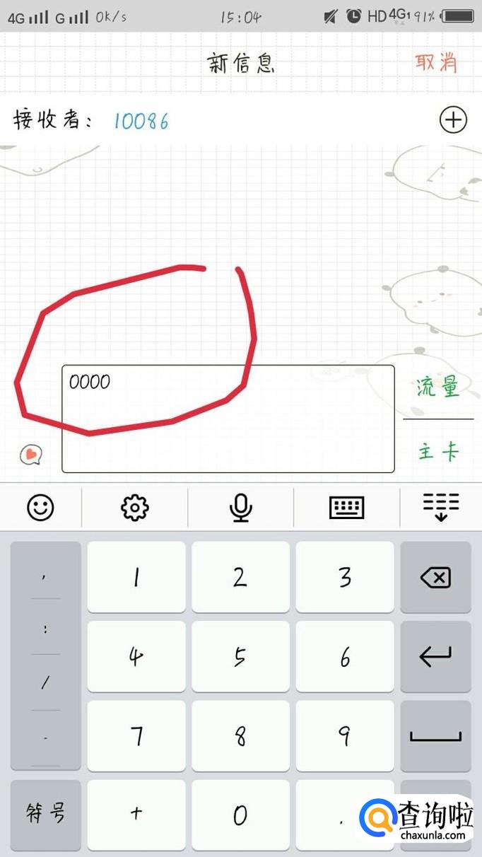 在编辑短信内容里填写“0000”,点击发送,接着你就会收到回复,然后根据回复内容操作就可以啦