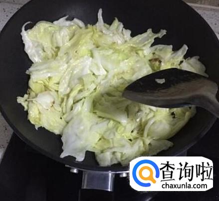 待锅中的莲白熟透之后,即可将其盛出。