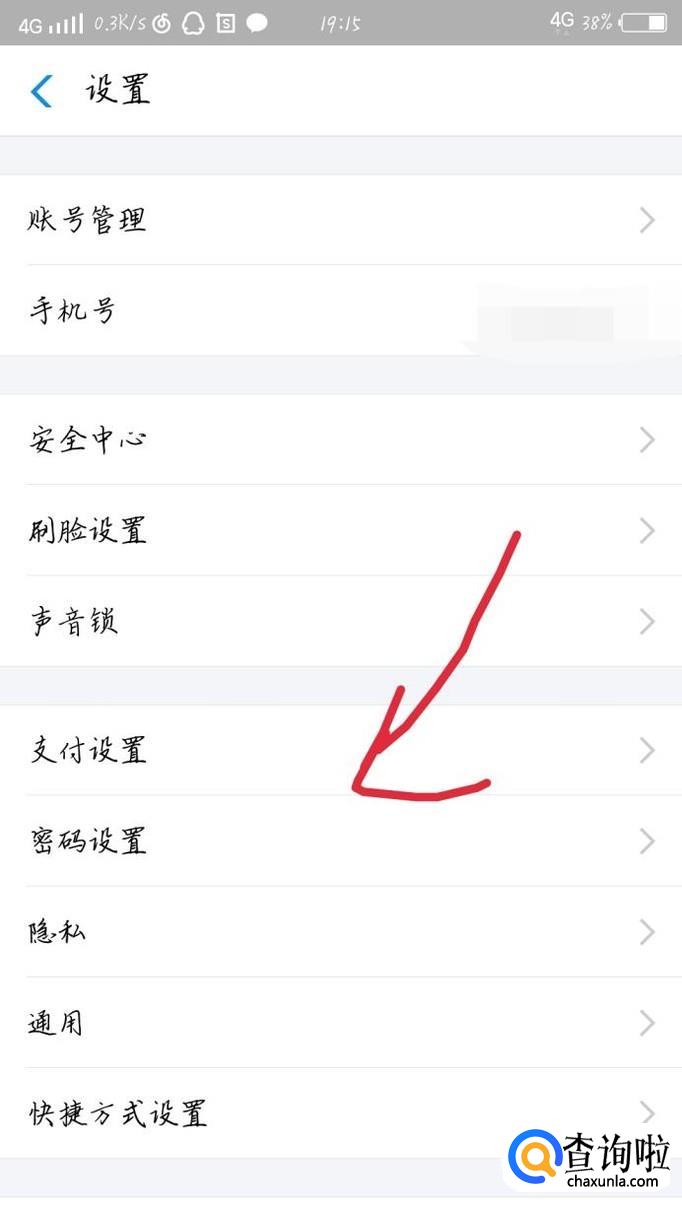 点击右上角的设置,如图1箭头所示。会看到一个新的界面,如图2所示。点击支付设置这个按钮,如图3箭头所示。