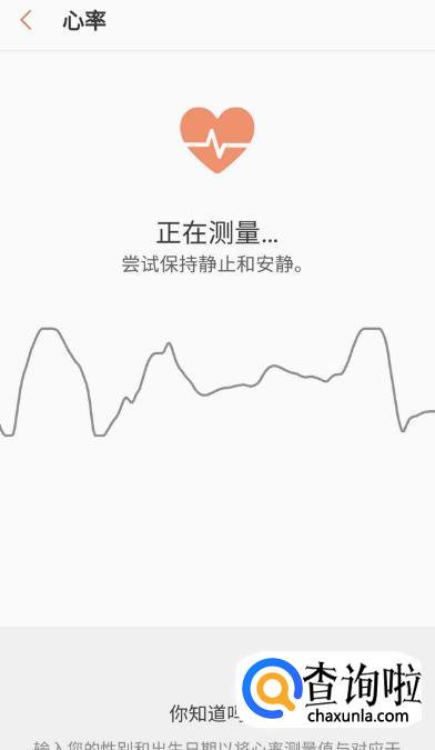 当用户将手指放置在传感器上时,页面就会出现【正在测量】的字样,此时应尝试保持静止和安静。