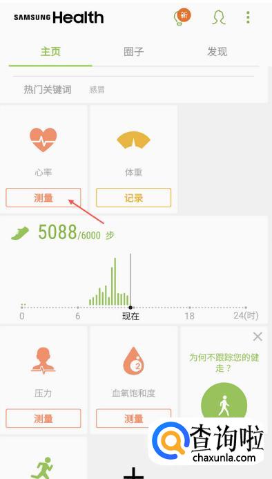 以【心率】为例,点击后会进入检测页面,用户需要将手指放在传感器上进行检测,那么传感器在哪里呢?将你的手机翻至背面,在手机镜头的旁边,就是三星手机的传感器了。