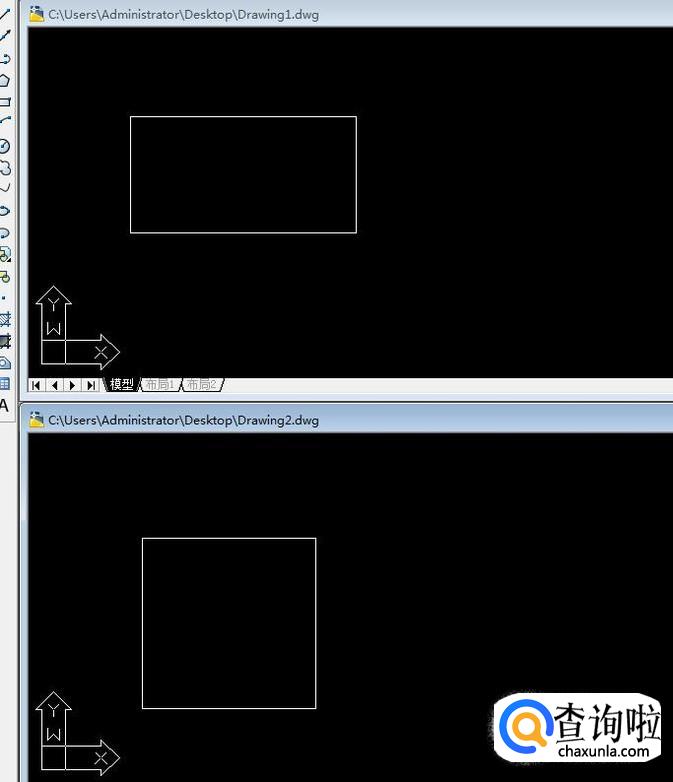 首先,我们同时打开两个CAD图形来演示(多个图形也是同理)。此时,软件只能显示一个窗口。