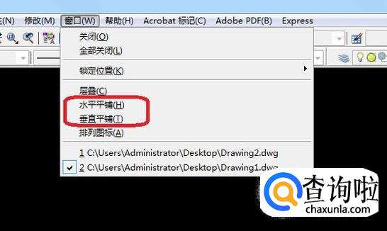 我们想要同时查看两个窗口,就需要点击菜单栏的“窗口”,然后下拉菜单中选择“水平平铺”或者“垂直平铺”。