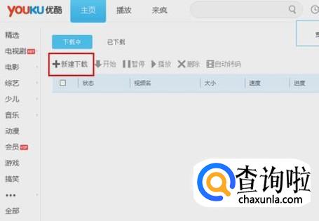 然后打开你的优酷,然后点击新建下载,如下图