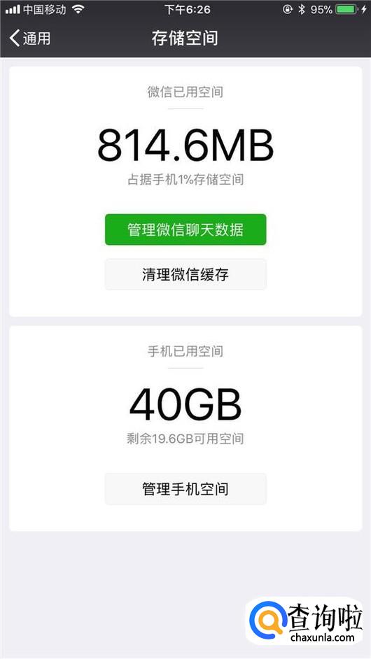 如果你的存储空间还是不够的话,建议把微信和其他视频app中的缓存清理一下,也是能够腾出一些存储空间的。