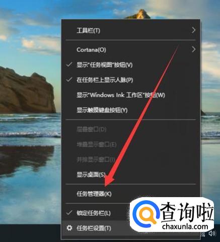 右击电脑任务栏,选择“任务管理器”,进入下一页面,如图所示。