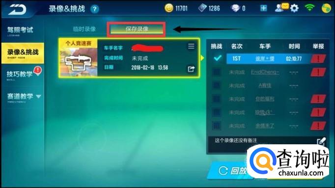 录像&挑战按钮要在飞车等级达到8级以上才可以开通,所以赶快升级吧!
