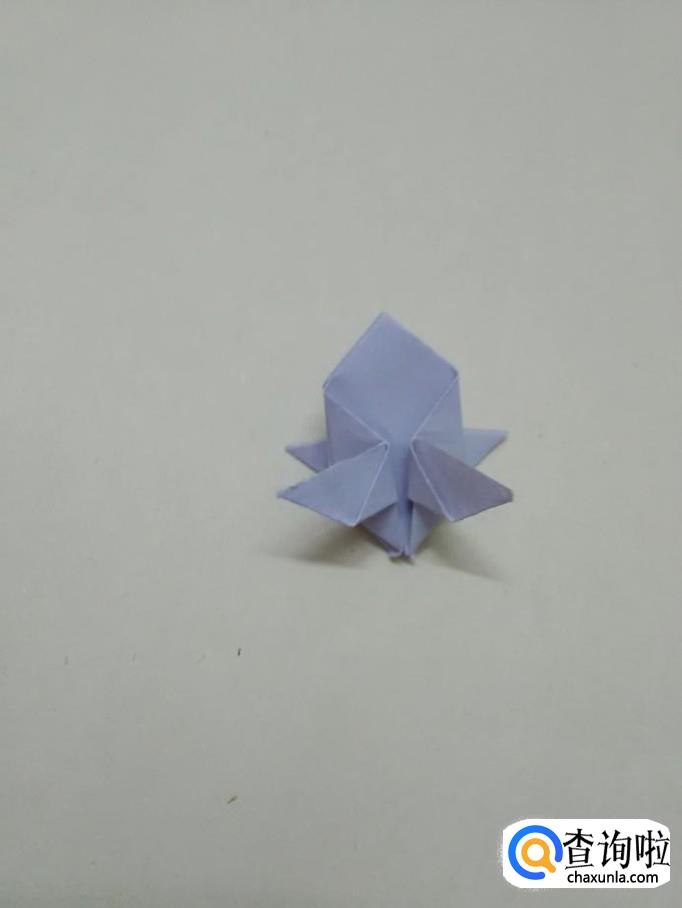 用手捏着对角线的中心,把纸拧成如下的形状。
