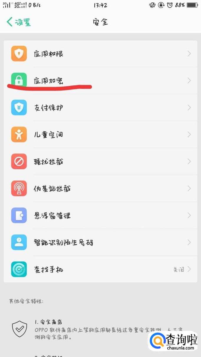 进入安全设置之后,选择“应用加密”选项。