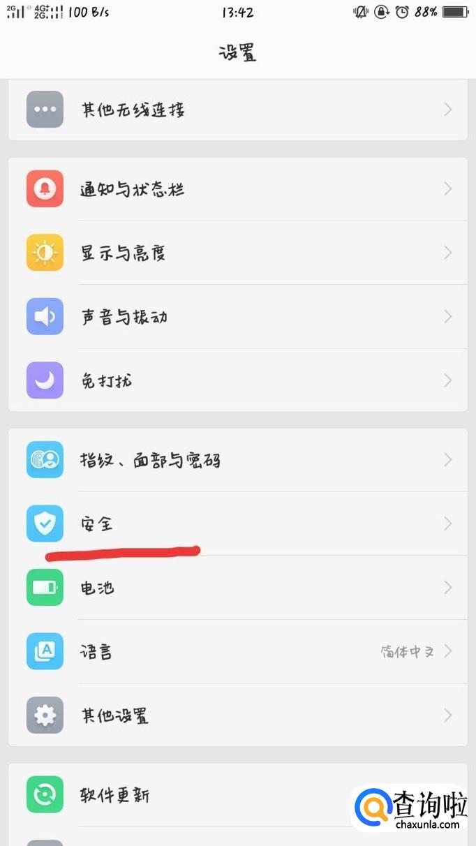 还有另外一种方法进入加密相册,那就是关闭应用程序的密码。首先找到设置,进入设置之后,选择“安全”。