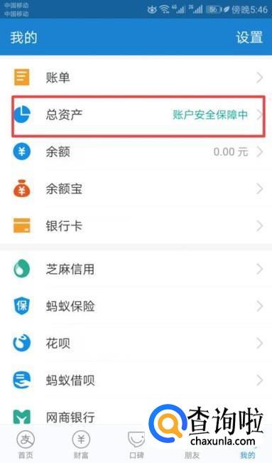 然后我们点击总资产;