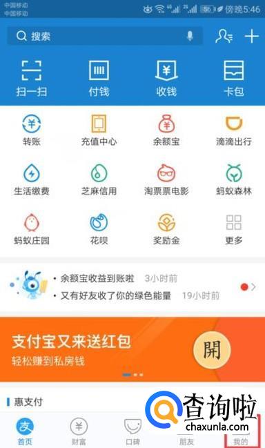 进入支付宝后,我们点击我的;