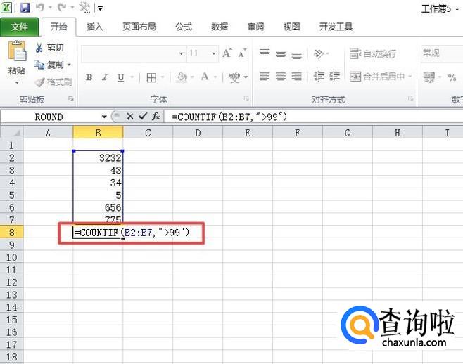 之后我们输入COUNTIF(B2:B7,">99"),然后我们按回车键;